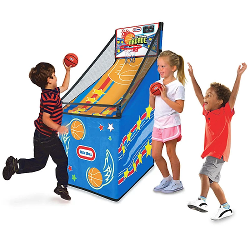 Effets sonores d'action de jeux d'arcade réalistes Tableau d'affichage aux sons réalistes pour deux joueurs Comprend deux ballons de basket-ball mous et gonflables Construction durable et solide Aucun outil requis et s'installe en quelques minutes! Notre exclusivité, uniquement chez Toys"R"Us. Le jeu d'arcade Easy Score Basketball offre des heures de jeu et d'action dynamiques! Un ou deux enfants peuvent jouer à la fois grâce au mode multi-joueurs, ce qui encourage les enfants à jouer à tour de rôle et promouvoit le jeu compétitif. Idéal pour les enfants de 3 ans et plus. S'installe facilement dans la plupart des intérieurs. Toute la famille peut participer! Des effets sonores intégrés encouragent les joueurs à lancer le ballon et à marquer des buts pour mieux pratiquer leurs aptitudes de basket-ball! Comprend deux ballons de basket-ball mous et gonflables. Construction durable et solide.