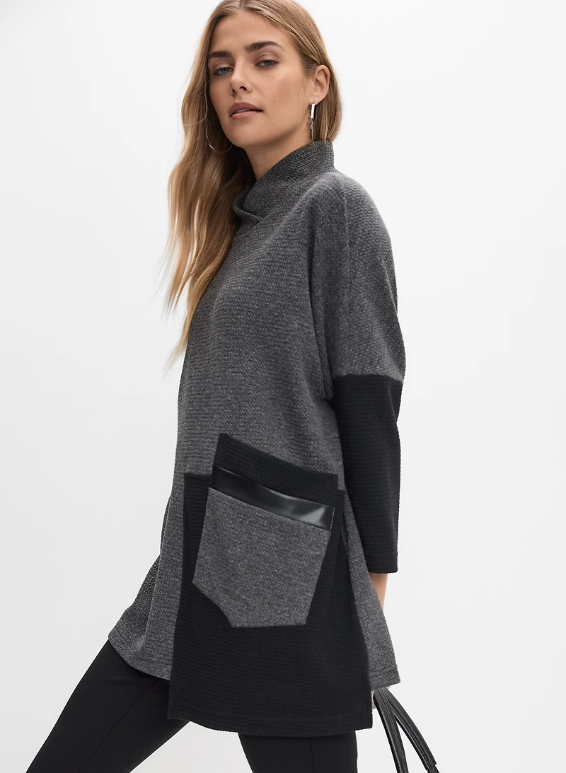 Parfait pour créer une variété de looks, notre pull signé Ribkoff a tout pour plaire : longueur flatteuse pour la silhouette, blocs de couleur contrastants et col cheminée. Longueur tunique Manches 3/4 Matière confortable Col cheminée Poches plaquées Blocs de couleur Détails en cuir végane Longueur à partir de l'épaule : 24 po