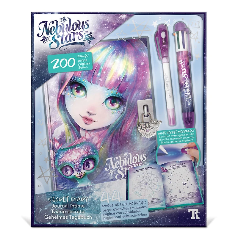 Sans contredit, cette jolie ligne de bricolage conçue au Québec est la plus tendance en 2018. Nebulous Stars véhicule de belles valeurs et vous invite à faire partie de son histoire avec un univers infini de beauté et d''imagination. La ligne, déjà bien connue dans plusieurs pays à travers le monde, est destinée à un avenir prometteur grâce à ses produits haut de gamme et son développement en pleine expansion. Nebulous Stars propose un large éventail de produits pour tous les goûts! Tout le monde a ses petits secrets! Les étoiles sont attentives à tous tes secrets à travers ce journal intime. Livré avec un stylo magique. Le journal intime de 200 pages inclut : Style-bille à 6 couleurs, crayon magique avec bouchon lumineux, 44 pages d''activités amusantes, page d''autocollants, 150 pages avec lignes, l''histoire complète de Isadora