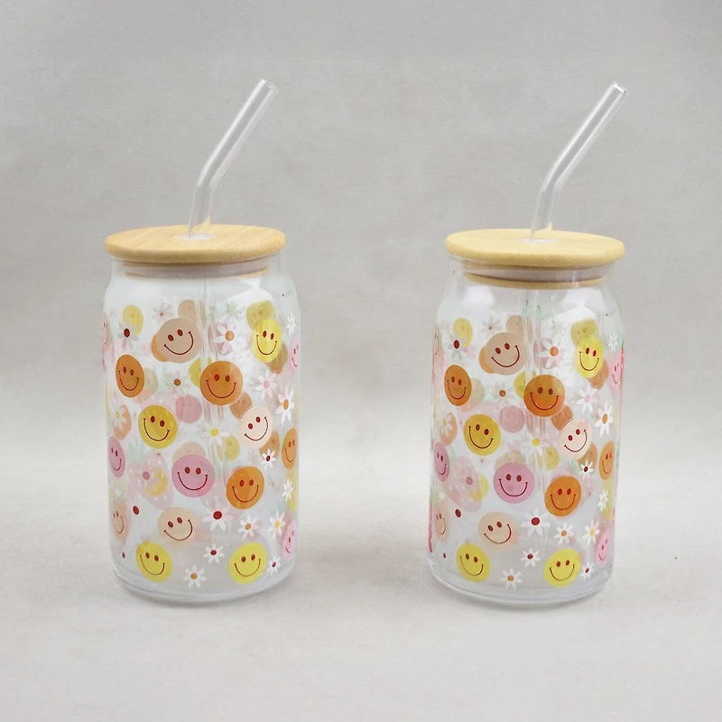 JS Gourmet Verres avec autocollants visages souriants, ensemble de 2