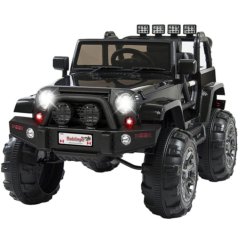 Ce robuste Mudslinger 12 V Ride on a tout ce qu'un enfant pourrait souhaiter. La batterie 12V 10A pour une durée de vie prolongée ainsi que 2 puissants moteurs 35W en font un gagnant avec tout conducteur hors route. Avec une suspension à 4 roues et une garde au sol supplémentaire, le Kidsquad Mudslinger permet une conduite amusante. Complet avec système de musique cool avec musique intégrée, ainsi que des options pour le pug in et jouer la musique de choix (cordon AUX fourni). La télécommande parentale assure un environnement d'apprentissage plus sûr pour votre tout-petit. Poids maximum 66 lb (généralement de 3 à 7 ans). 2 vitesses, avant et arrière