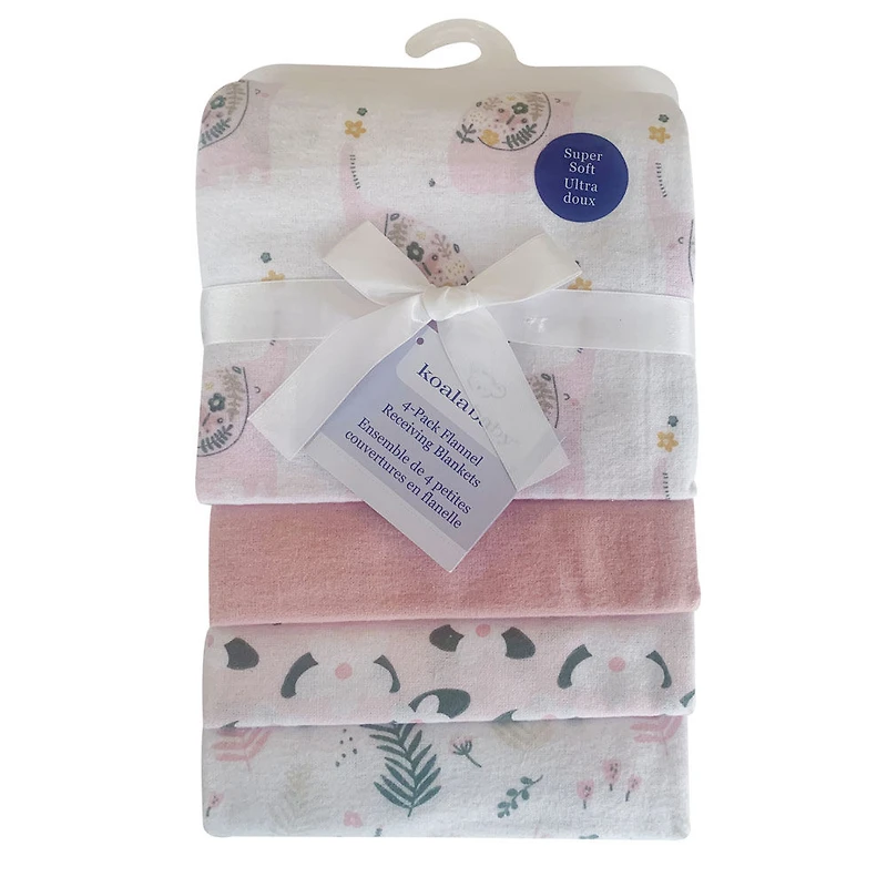 Koala Baby - Couverture pour bebe en Flanelle 100% coton. Enveloppez votre bébé dans la douceur et la chaleur de cette couverture pour bébé en flanelle 100 % coton. Le carré de dimension 30 po x 30 po (76 x 76 cm) est idéal pour dormir, emmailloter, câliner et faire des rots ! Grâce à cet ensemble de 4 couvertures, vous ne serez jamais pris au dépourvu, que ce soit à la maison ou en déplacement. Les couvertures pour bébé sont indispensables à chaque nouvelle maman et un incontournable sur le registre de bébé ! Vous n'en aurez jamais trop ! Lavable en machine à l'eau tiède et se sèche par culbutage à basse température. Chaque emballage comprend 4 couvertures et est offert dans des motifs et des couleurs coordonnés.