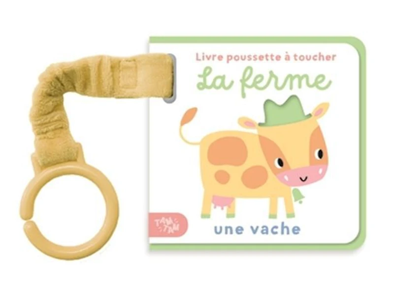 Un imagier équipé d'une sangle élastique permettant de l'attacher à la poussette, pour distraire son enfant lors des promenades. Un livre avec des éléments en feutrine à toucher.