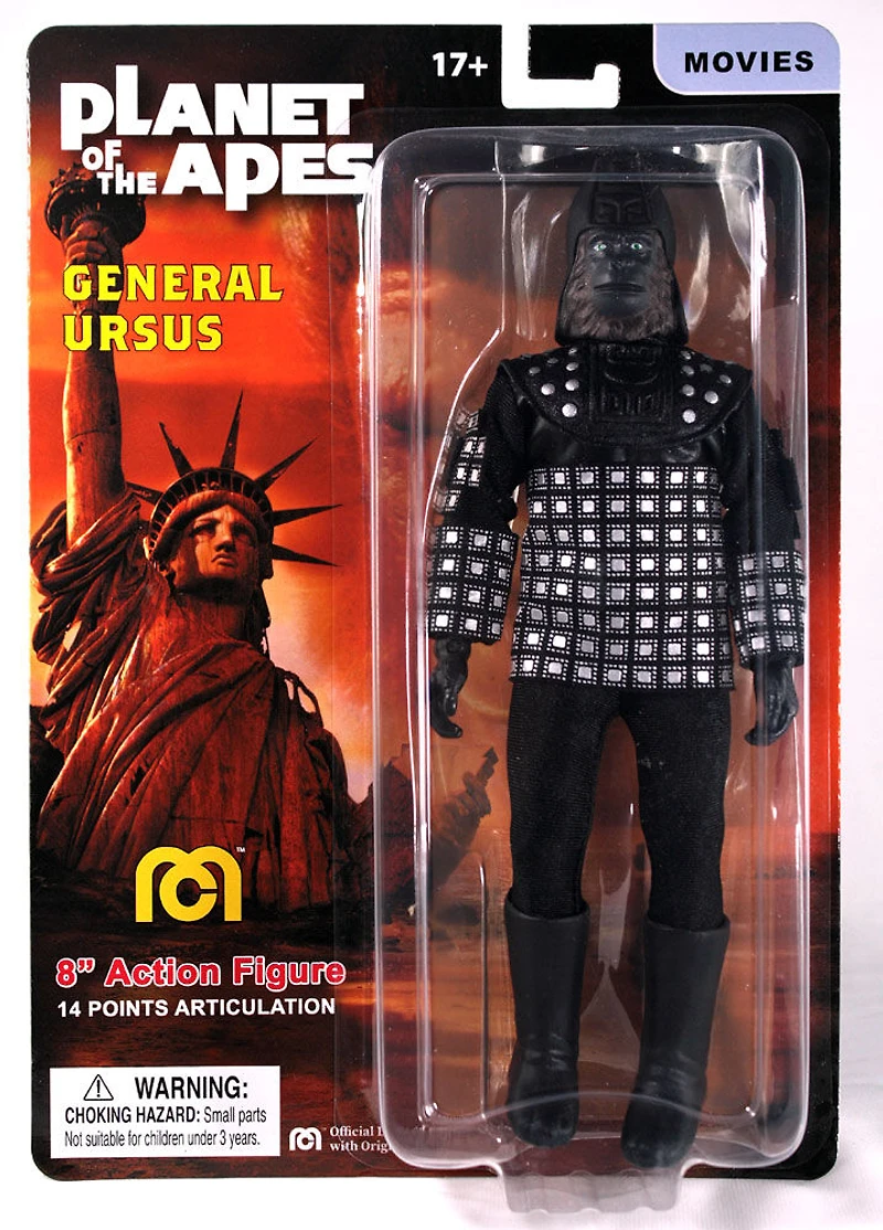 Vous pouvez maintenant explorer " Le Secret de la planète des singes " avec cette toute nouvelle figurine de 8 po de style classique du général Ursus! Le général Ursus est vêtu du costume qu'il porte à l'écran et est modelé de façon à reproduire le personnage fidèlement. " La seule bonne figurine... est une figurine Mego! "