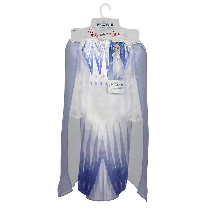 1st bullet text 2nd bullet text 3rd bullet text 4th bullet text 5th bullet text Revivez les derniers moments les plus marquants d'Elsa du film Frozen 2 de Disney avec la robe de la Reine des Neiges d'Elsa ! Cette robe est inspirée de la dernière tenue iconique d'Elsa, la Reine des Neiges, tirée du film. Cette belle robe blanche et chatoyante est ornée de touches violettes et de bleues et comporte une cape ailée délicate et transparente. Portez cette robe, et vous vous sentirez prête à mener sans peur, tout comme Elsa.