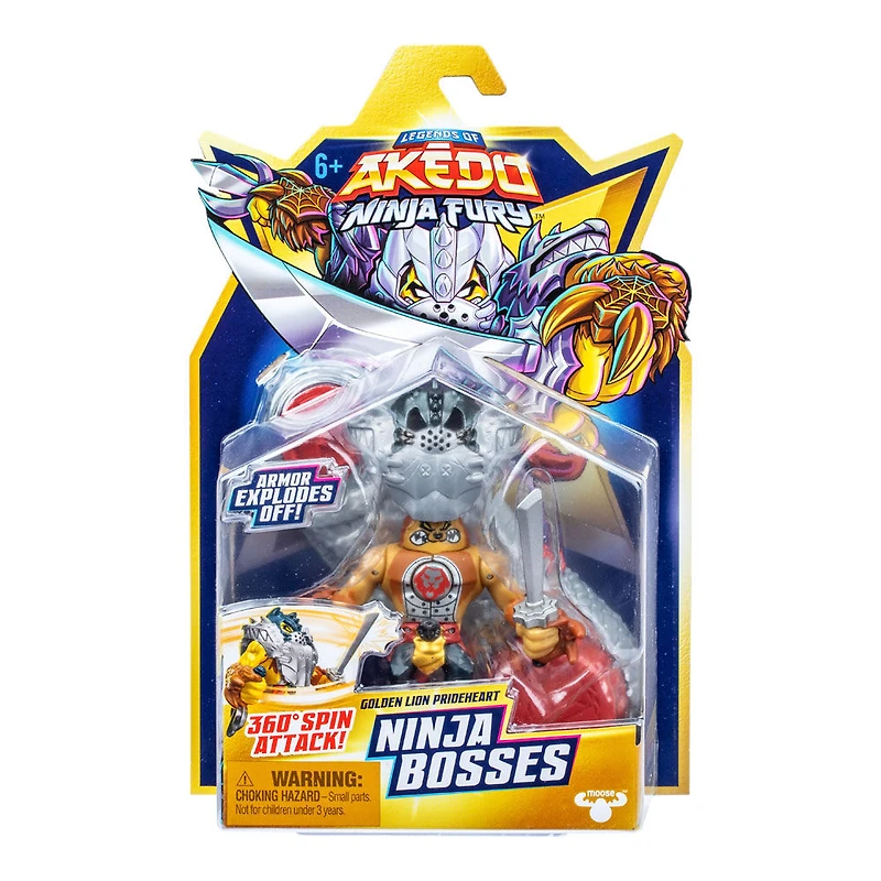 Légendes d'Akedo Ninja Fury Ninja Bosses, attaque rotative à 360°, armure qui se détache, coeur de fierté du lion d'or
