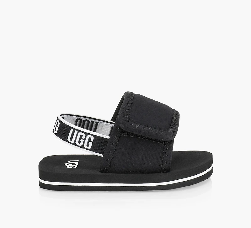Avec ses deux sangles et sa bride au talon ornée du motif graphique UGG®, la sandale Lennon Slingback affiche un style imposant dans une mini silhouette. Ce modèle est conçu pour être facile à manipuler par les petites mains grâce à ses deux fermetures autoagrippantes. Une assise plantaire légère et une tige coussinée amortissent chaque pas, tandis que la bride arrière extensible offre un soutien supplémentaire pour affronter toutes les aventures!