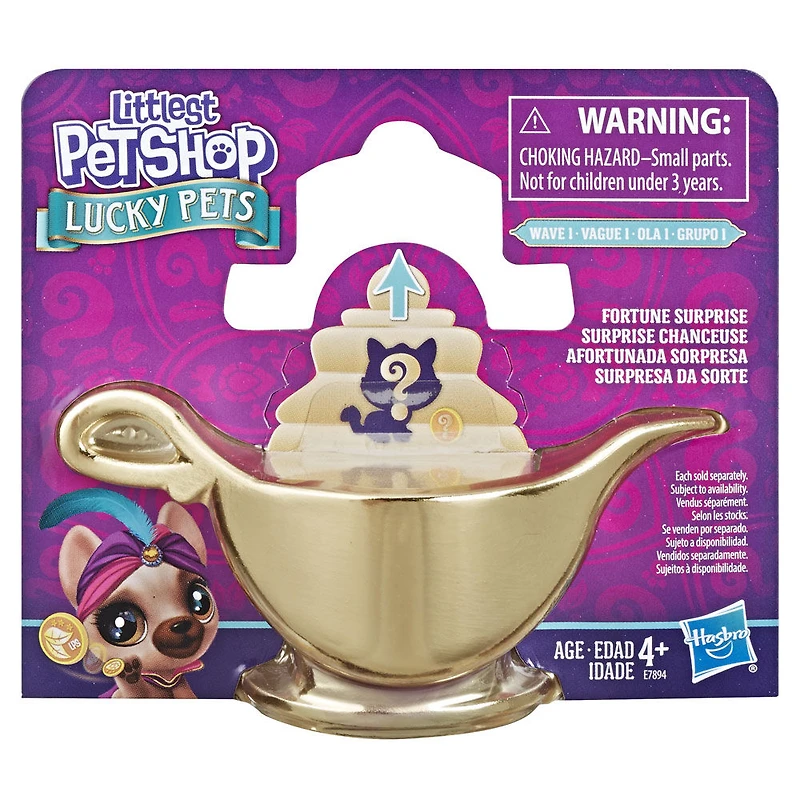 Un adorable animal de taille mini, vendu dans une lampe de génie ! Il suffit de déballer la boîte pour découvrir l'animal chanceux, son jeton et un guide Un guide de collection permet de connaître la rareté de l'animal et les autres animaux à découvrir. On pourra alors savoir qui sera chanceux, super chanceux ou ultra chanceux Chaque animal est vendu avec un jeton présentant deux icônes. Il suffit de tirer à pile ou chance pour découvrir quel type de chance l'animal procure La collection Lucky Pets contient plus de 150 animaux : Chaque animal est vendu séparément. Selon les stocks Un cadeau parfait en tout temps pour enfants âgés de 4 ans et plus Les enfants pourront connaître leur chance à l'aide des animaux colorés qui deviennent leurs porte-bonheur ! Il suffit de lancer le jeton inclus dont les deux faces sont marquées d'une icône, puis de consulter le guide pour découvrir ce que signifie l'icône de chance sur laquelle le jeton a atterri. C'est le type de chance qu'apporte l'animal. Il peut s'agir de chance en amitié, lors d'activités ou autres. Il suffit de tirer à pile ou chance pour le découvrir ! Fait partie de la collection Littlest Pet Shop Lucky Pets. Littlest Pet Shop et tous les personnages reliés sont des marques de commerce de Hasbro. Inclut 1 animal de taille mini, jeton et guide de collection. À partir de 4 ans ATTENTION : RISQUE D'ÉTOUFFEMENT : Petites pièces. Déconseillé aux enfants de moins de 3 ans.