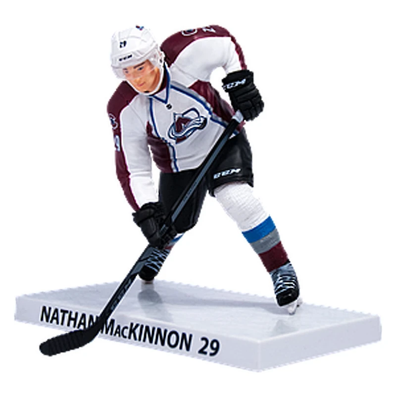 Cette figurine hautement détaillée de 6 pouces met en vedette un jeune Nathan McKinnon. Habillé de son chandail blanc sur la route, il s'élance avec un tir du poignet rapide. Figurines deluxe 6 pouces de la LNH. Contenant une figurine, une plaque de support et un bâton de hockey. La plaque a une surface de glace détaillée et le nom et numéro du joueur sont en vedette à l'avant du pied. Nous avons pris quelques-uns des meilleurs joueurs de la LNH. Nous les avons étudiés pour ensuite les réaliser afin de vous offrir sous licence officielle, les figurines réalistes à collectionner. Leurs poses sont inspirées par les mouvements réels des joueurs en action. Les détails et les répliques officielles des équipements sont la preuve du temps et de l'attention que nous avons passés sur chaque joueur.