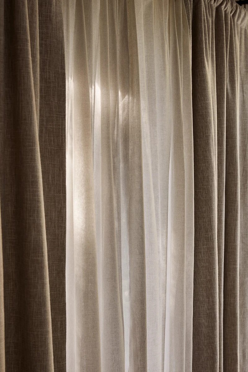Deux rideaux très longs, réalisés en tissu très dense qui réduit significativement la pénétration lumineuse, avec doublure occultante sur l'arrière. Modèle avec suspension multibande qui permet d'adapter le rideau sur des tringles ou des rails variés en offrant différentes options d'installation. Changer l'aspect de vos rideaux n'aura jamais été aussi simple. Agrafes et crochets non inclus. Ourlet au bas. Généralement, les couleurs sombres bloquent plus efficacement la lumière que les couleurs claires.