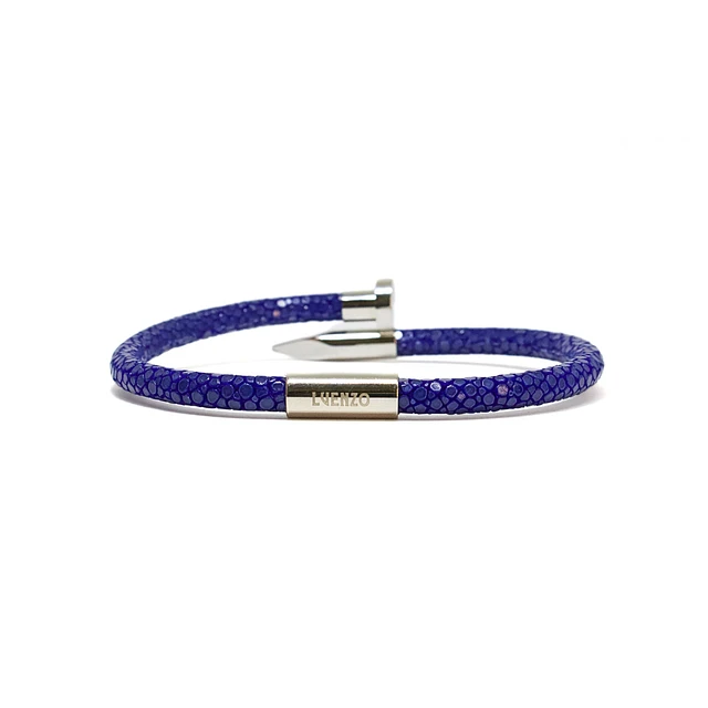 Luenzo Exotic Stingray Electric Blue Leather Nail Bracelet
