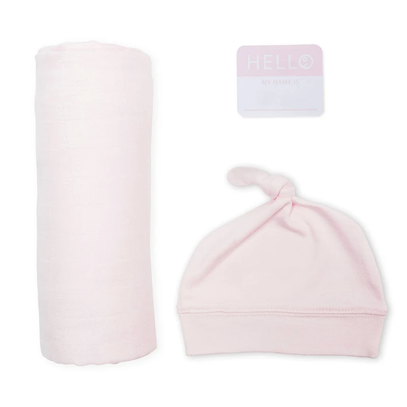 Lulujo Ensemble chapeau et couverture en bambou pour bébé nouveau-né Hello World Rose
