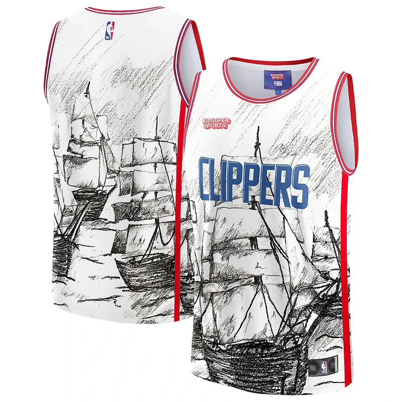 Préparez-vous pour un pourboire avec style en portant ce maillot LA Clippers Hometown de NBA et KidSuper Studios de Fanatics. Capturant l'intersection du sport et de l'art, cet équipement inspiré du streetwear présente des illustrations originales du fondateur de KidSuper, Colm Dillane, qui honore la culture unique des LA Clippers. Montrez la fierté de votre ville natale lorsque vous sortez dans cette superbe pièce.