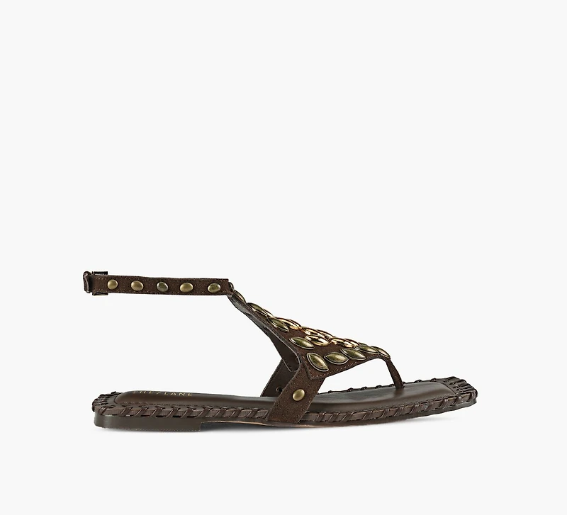 À la croisée de l’élégance et du caractère, les sandales Malta de The Lane apportent une touche affirmée aux tenues estivales. Confectionnées avec une tige en suède souple et reposant sur une fine semelle en cuir, elles se distinguent par leurs clous délicatement brillants et leur bride cheville ajustable, pour un maintien flatteur. Parfaites de jour comme de soir, elles complètent aussi bien les robes légères que les essentiels d’été structurés.