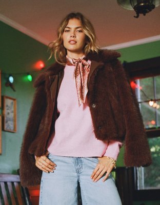 L’élégance est réelle. Rehaussez le style de tes vêtements d’extérieur avec ce manteau en fausse fourrure parfait.