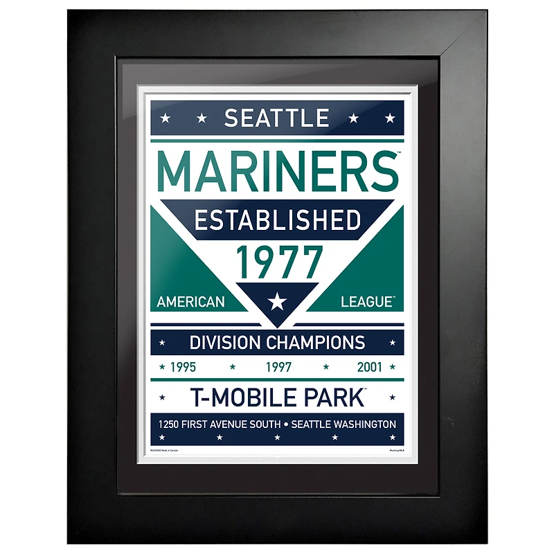 Montrez votre fierté inébranlable des Mariners de Seattle en saisissant cette œuvre d'art encadrée double ton de l'équipe de 12 po x 16 po. Il présente des graphismes nets des Seattle Mariners qui ajouteront un esprit d'équipe indispensable à n'importe quelle pièce. Tout le monde saura que vous êtes le fan le plus dévoué des Seattle Mariners quand ils apercevront cette superbe pièce !