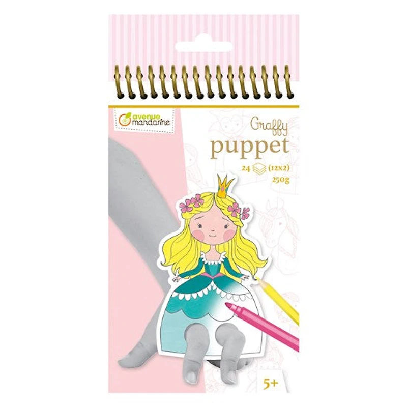 Un joli carnet avec 12 marionnettes à doigts prédécoupées à colorier. L'enfant peut ainsi personnaliser ses marionnettes avant de jouer... princes et princesses prendront vie pour raconter de jolies histoires?!5 ans et plusContient 24 feuilles avec 12 motifs de princes et princesses