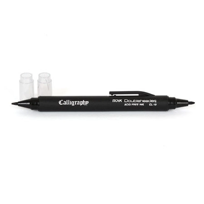 Feutre de calligraphie à corps ergonomique muni de de deux pointes rigides biseautées de 1,5 et 3 mm. Le tracé est précis et contrôlé et les capuchons sont interchangeables.