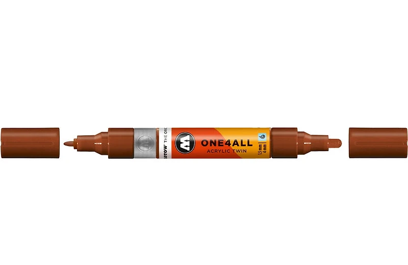 Les marqueurs One4All de Molotow sont conçus et fabriqués en Allemagne. L’encre acrylique de haute qualité est permanente, résistante aux UV, non toxique, et sèche rapidement. Elle peut être diluée avec de l’eau ou de l’acétone, et sèche en un fini opaque et semi-lustré sur presque toutes les surfaces poreuses ou non poreuses. Ils sont équipés d’un système capillaire breveté et d’une valve Flowmaster, qui offre un débit de peinture constant jusqu’à la pointe du marqueur. Conviennent à une utilisation intérieure et extérieure. Utilisez-les avec d’autres peintures en aérosol et marqueurs Molotow. Chaque marqueur peut être rempli au moins 50 fois avec les recharges de peinture One4All de Molotow, qui peuvent être mélangées pour créer la couleur de votre choix. Conseil : Les chiffres sur le côté de chaque marqueur (p. ex. 127, 327, 427, 627) indiquent la taille du baril, et donc la quantité de peinture que le marqueur peut contenir. La gamme Molotow One4All est écoresponsable comme tous les marqueurs sont réutilisables. De plus, les marqueurs et les peintures en aérosol utilisent la plus petite quantité de solvants possible, basée sur une peinture acrylique qui est composée à 85 % d'eau. L’emballage est respectueux de l'environnement et le fabricant a un programme de responsabilité sociale.