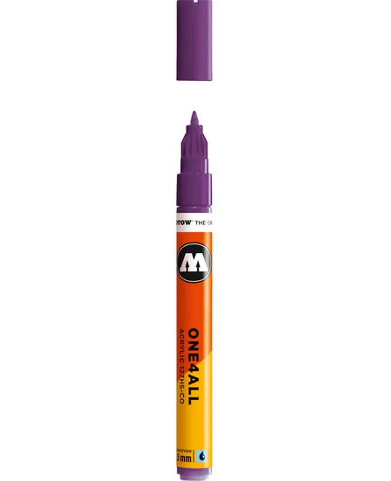 Les marqueurs One4All de Molotow sont conçus et fabriqués en Allemagne. L’encre acrylique de haute qualité est permanente, résistante aux UV, non toxique, et sèche rapidement. Elle peut être diluée avec de l’eau ou de l’acétone, et sèche en un fini opaque et semi-lustré sur presque toutes les surfaces poreuses ou non poreuses. Ils sont équipés d’un système capillaire breveté et d’une valve Flowmaster, qui offre un débit de peinture constant jusqu’à la pointe du marqueur. Conviennent à une utilisation intérieure et extérieure. Utilisez-les avec d’autres peintures en aérosol et marqueurs Molotow. Chaque marqueur peut être rempli au moins 50 fois avec les recharges de peinture One4All de Molotow, qui peuvent être mélangées pour créer la couleur de votre choix. Conseil : Les chiffres sur le côté de chaque marqueur (p. ex. 127, 327, 427, 627) indiquent la taille du baril, et donc la quantité de peinture que le marqueur peut contenir. La gamme Molotow One4All est écoresponsable comme tous les marqueurs sont réutilisables. De plus, les marqueurs et les peintures en aérosol utilisent la plus petite quantité de solvants possible, basée sur une peinture acrylique qui est composée à 85 % d'eau. L’emballage est respectueux de l'environnement et le fabricant a un programme de responsabilité sociale.