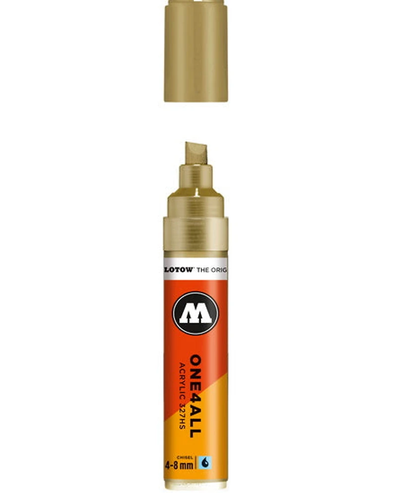 Les marqueurs One4All de Molotow sont conçus et fabriqués en Allemagne. L’encre acrylique de haute qualité est permanente, résistante aux UV, non toxique, et sèche rapidement. Elle peut être diluée avec de l’eau ou de l’acétone, et sèche en un fini opaque et semi-lustré sur presque toutes les surfaces poreuses ou non poreuses. Ils sont équipés d’un système capillaire breveté et d’une valve Flowmaster, qui offre un débit de peinture constant jusqu’à la pointe du marqueur. Conviennent à une utilisation intérieure et extérieure. Utilisez-les avec d’autres peintures en aérosol et marqueurs Molotow. Chaque marqueur peut être rempli au moins 50 fois avec les recharges de peinture One4All de Molotow, qui peuvent être mélangées pour créer la couleur de votre choix. Conseil : Les chiffres sur le côté de chaque marqueur (p. ex. 127, 327, 427, 627) indiquent la taille du baril, et donc la quantité de peinture que le marqueur peut contenir. La gamme Molotow One4All est écoresponsable comme tous les marqueurs sont réutilisables. De plus, les marqueurs et les peintures en aérosol utilisent la plus petite quantité de solvants possible, basée sur une peinture acrylique qui est composée à 85 % d'eau. L’emballage est respectueux de l'environnement et le fabricant a un programme de responsabilité sociale.
