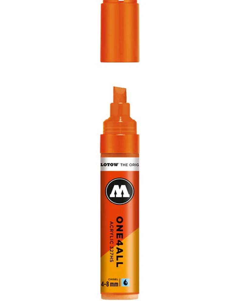 Les marqueurs One4All de Molotow sont conçus et fabriqués en Allemagne. L’encre acrylique de haute qualité est permanente, résistante aux UV, non toxique, et sèche rapidement. Elle peut être diluée avec de l’eau ou de l’acétone, et sèche en un fini opaque et semi-lustré sur presque toutes les surfaces poreuses ou non poreuses. Ils sont équipés d’un système capillaire breveté et d’une valve Flowmaster, qui offre un débit de peinture constant jusqu’à la pointe du marqueur. Conviennent à une utilisation intérieure et extérieure. Utilisez-les avec d’autres peintures en aérosol et marqueurs Molotow. Chaque marqueur peut être rempli au moins 50 fois avec les recharges de peinture One4All de Molotow, qui peuvent être mélangées pour créer la couleur de votre choix. Conseil : Les chiffres sur le côté de chaque marqueur (p. ex. 127, 327, 427, 627) indiquent la taille du baril, et donc la quantité de peinture que le marqueur peut contenir. La gamme Molotow One4All est écoresponsable comme tous les marqueurs sont réutilisables. De plus, les marqueurs et les peintures en aérosol utilisent la plus petite quantité de solvants possible, basée sur une peinture acrylique qui est composée à 85 % d'eau. L’emballage est respectueux de l'environnement et le fabricant a un programme de responsabilité sociale.
