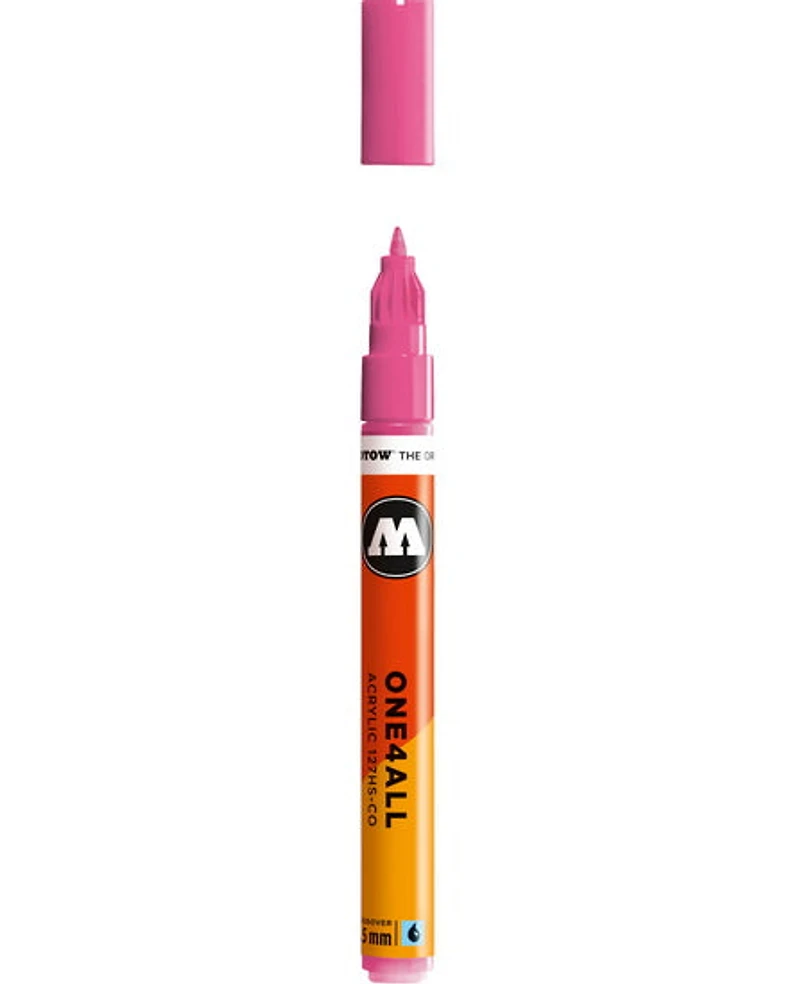 Les marqueurs One4All de Molotow sont conçus et fabriqués en Allemagne. L’encre acrylique de haute qualité est permanente, résistante aux UV, non toxique, et sèche rapidement. Elle peut être diluée avec de l’eau ou de l’acétone, et sèche en un fini opaque et semi-lustré sur presque toutes les surfaces poreuses ou non poreuses. Ils sont équipés d’un système capillaire breveté et d’une valve Flowmaster, qui offre un débit de peinture constant jusqu’à la pointe du marqueur. Conviennent à une utilisation intérieure et extérieure. Utilisez-les avec d’autres peintures en aérosol et marqueurs Molotow. Chaque marqueur peut être rempli au moins 50 fois avec les recharges de peinture One4All de Molotow, qui peuvent être mélangées pour créer la couleur de votre choix. Conseil : Les chiffres sur le côté de chaque marqueur (p. ex. 127, 327, 427, 627) indiquent la taille du baril, et donc la quantité de peinture que le marqueur peut contenir. La gamme Molotow One4All est écoresponsable comme tous les marqueurs sont réutilisables. De plus, les marqueurs et les peintures en aérosol utilisent la plus petite quantité de solvants possible, basée sur une peinture acrylique qui est composée à 85 % d'eau. L’emballage est respectueux de l'environnement et le fabricant a un programme de responsabilité sociale.