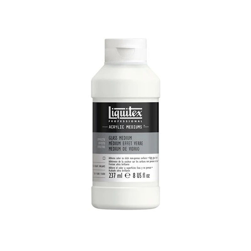 Le médium effet verre de Liquitex peut être mélangé à de la couleur pour créer une texture lisse et fluide qui, en séchant, donne un fini très brillant et adhère aux surfaces lisses et non poreuses comme le verre, la céramique et la porcelaine. Il augmente la durabilité à long terme des surfaces, prolonge la couleur sans affecter la stabilité de l'acrylique et ralentit le temps de séchage pour vous aider à créer des mélanges plus subtils. Lorsqu'il est thermodurci, ce médium crée une surface brillante et résistante aux rayures.Caractéristiques :Résistance à la lumière et qualité d'archivagePermanentNon jaunissantFlexible et ne craque pasRésistant à l'eau lorsque secMélangeable avec tous les produits LiquitexSpécifications :Contient 237 ml (8 oz)Peut être utilisé avec les peintures et médiums acryliquesPeut être utilisé sur le verre, la céramique et la porcelaineTechniques recommandées : peinture sur verre à haute brillanceConseils :Mélanger lentement à l’acrylique (10 % peinture et 90 % médium)Fonctionne mieux avec l'acrylique fluide et l'encre acryliqueLaisser sécher complètement avant de mettre au fourDurcir au four pendant 30 minutes à 300°F / 150°CNe pas diluer avec de l'eauSi de la mousse apparaît lorsque vous mélangez, laissez reposer le mélange jusqu’à ce que les bulles disparaissent