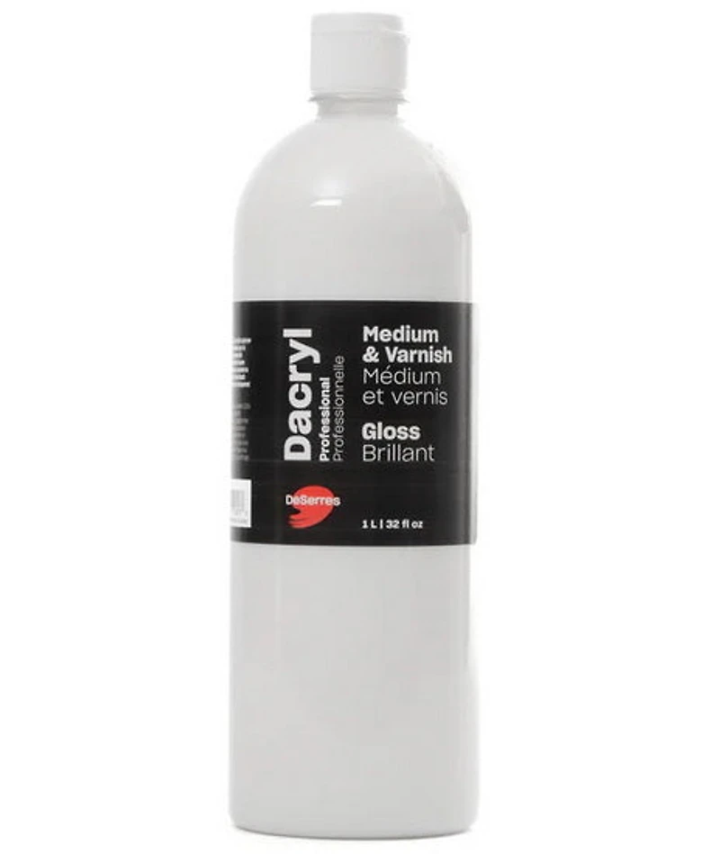 Ce médium et vernis combiné 100 % polymère acrylique permet d'allonger l'acrylique, d'augmenter sa transparence et de la rendre plus fluide. Il sert également de vernis afin de protéger la peinture acrylique des éléments rigoureux et devient transparent au séchage. Un produit Dacryl de qualité signé DeSerres.