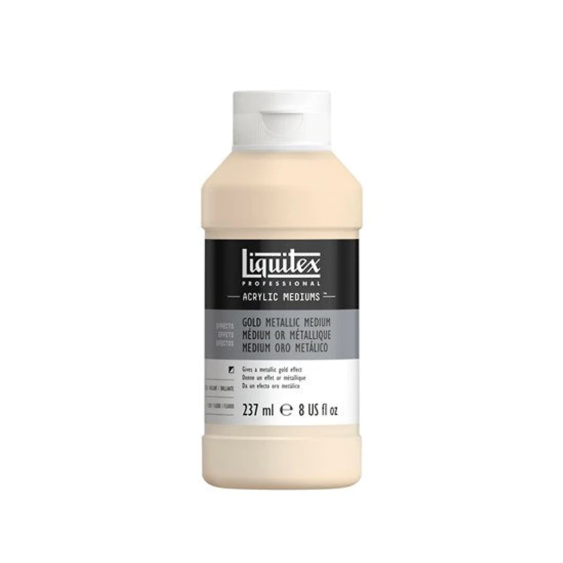 Le médium or métallique de Liquitex donne à la peinture un effet métallique doré. Il réduit la viscosité des peintures Heavy Body, prolonge la couleur sans affecter la stabilité de l'acrylique, et ralentit le temps de séchage pour vous aider à créer des mélanges plus subtils. Ce médium peut également être utilisé directement sorti de la bouteille pour ajouter des reflets dorés en surface.Caractéristiques :Résistance à la lumière et qualité d'archivagePermanentNon jaunissantFlexible et ne craque pasRésistant à l'eau lorsque secMélangeable avec tous les produits LiquitexSpécifications :Contient 237 ml (8 oz)Peut être utilisé avec les peintures et médiums acryliquesPeut être utilisé sur toutes les surfaces qui conviennent à l'acryliqueTechniques recommandées : aérographie, aérosol, coloration, détails Conseils :Mélangez doucement jusqu'à l’obtention de l’effet métallique et de la viscosité souhaités (les couleurs transparentes donnent de meilleurs résultats)À utiliser directement sorti de la bouteille pour obtenir un effet doré semi-opaqueSi des bulles apparaissent lorsque vous mélangez, laissez reposer le médium jusqu’à ce qu’elles disparaissent