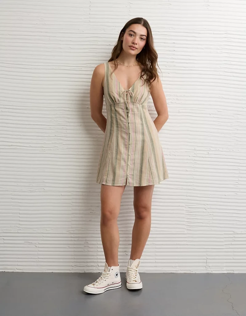 Boutonnée à l’avant, cette minirobe légère est conçue pour les journées chaudes et ensoleillées. Porte-la avec une paire d’espadrilles ou des bottes.