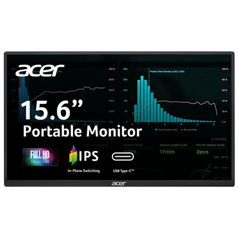 Moniteur portatif DEL IPS HD intégrale GàG 6 ms 60 Hz de 15,6 po d'Acer (PM161Q JBMIUUX) - Noir