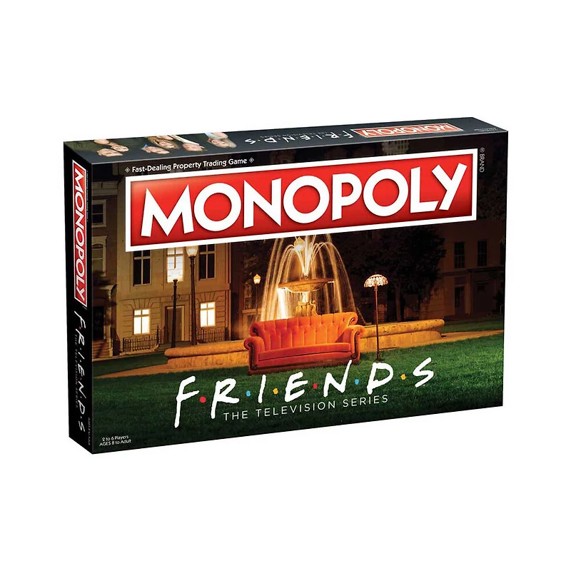 How you doin'? Prenez votre place sur le canapé orange et revivez vos moments préférés de l'émission télévisée sur les hauts et les bas de la vie avec MONOPOLY: "Friends". Achetez, vendez et échangez des propriétés nommées d'après les expériences partagées par Ross, Rachel, Monica, Chandler, Phoebe et Joey sur les dix saisons de la série télévisée. Évitez les impôts comme "Central Perk Tab" et "American Football" et acheter "Coffee Mugs" et "Sofas" laissez vos adversaires avec seulement des souvenirs!