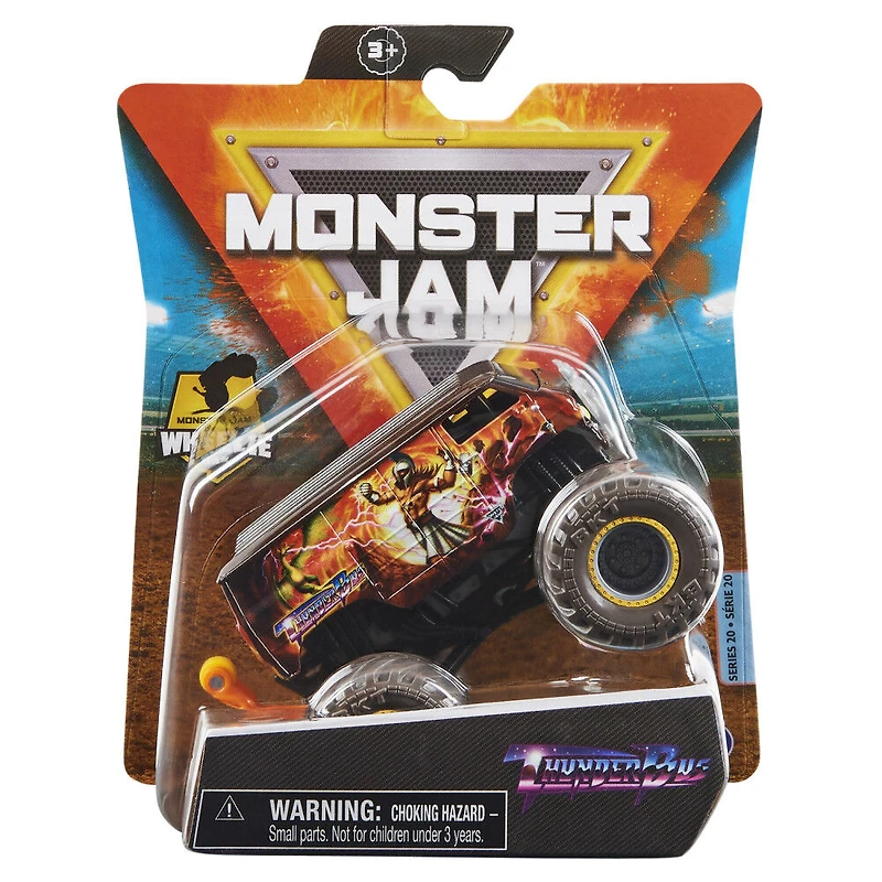 Contenu : 1 monster truck Monster Jam à l'échelle 1:64, 1 barre de roues amovible, 1 affiche de collection