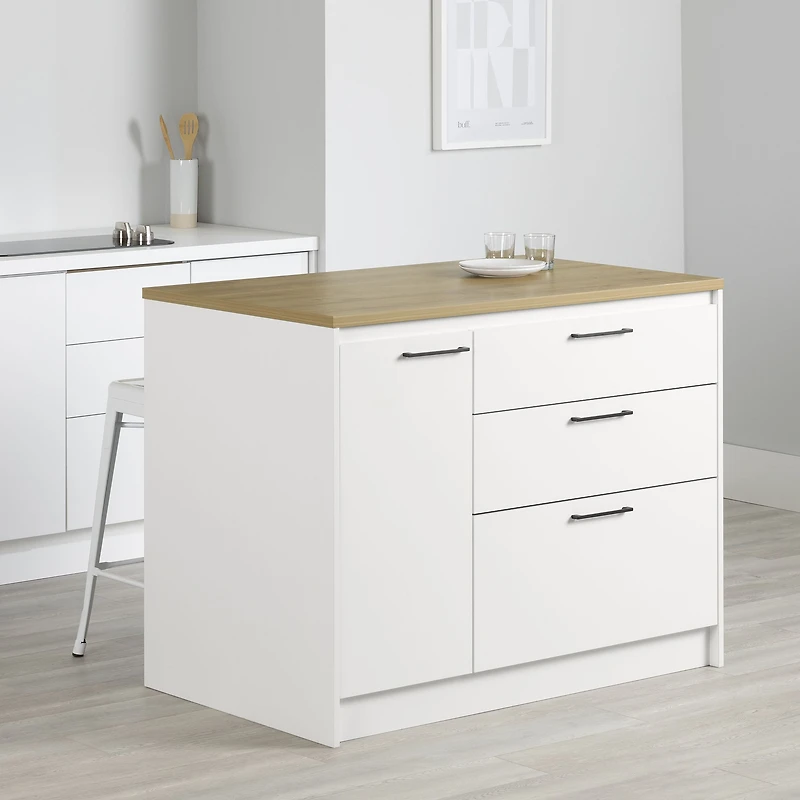 Mylos Îlot de cuisine - Blanc et Érable muscade
