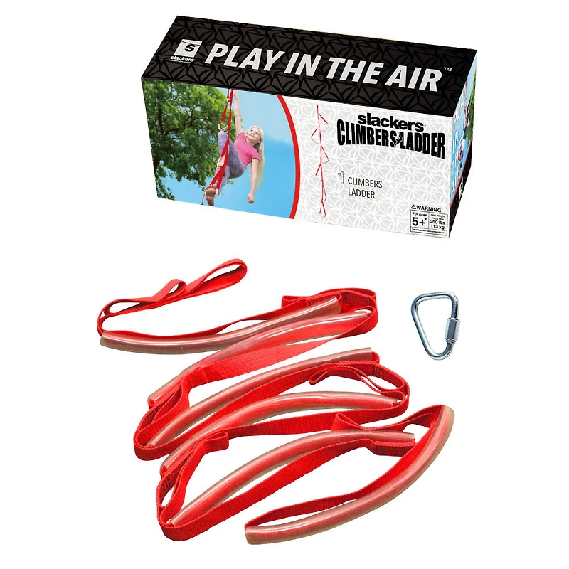 Échelle de grimpeurs ninja. Inspirée des grimpeurs professionnels, notre nouvelle échelle Climbers vous permet d'accéder facilement à notre Ninjaline ou tout simplement de jouer dans les airs. Fixez-le à notre Ninjaline ou à un arbre robuste ou à une structure de jeu.