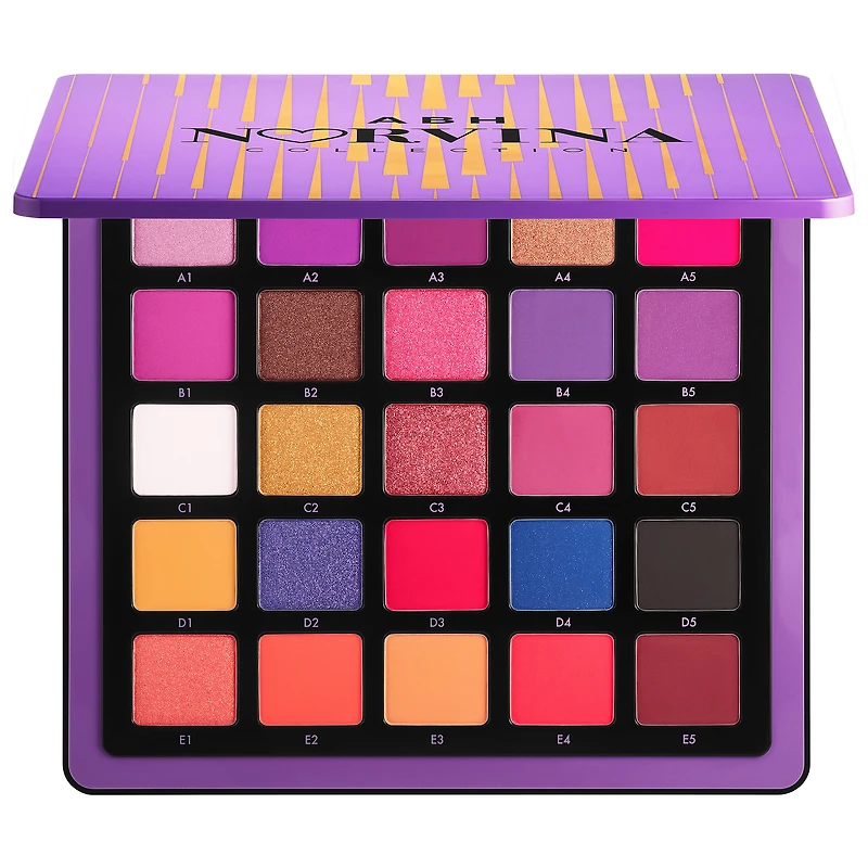 What it is: A professional-grade artistry palette featuring 25 deluxe-size, high-performance shades with maximum payoff, curated by Norvina herself. Ingredient Callouts: Free of parabens and phthalates. This product is also vegan, cruelty-free, and gluten-free. What Else You Need to Know: Norvina Pro Pigment contains 25 highly-pigmented, iconic colors, daring brights, and vibrant, professional pigments in oversize pans to offer limitless possibilities. It’s perfect for the artist who wants to have the ultimate color collection and for the makeup fanatic who is ready to take their makeup creativity to the next level. This Palette Contains: - 25 x Pressed Pigments in A1 (metallic lilac with a cool pink reflect), A2* (matte mid-tone vivid violet), A3* (matte rich plum), A4 (metallic golden copper), A5* (matte vibrant warm candy pink), B1* (matte vivid lilac), B2 (metallic rosy bronze with gold sparkles), B3* (metallic platinum rose with gold sparkles), B4* (matte deep cool violet), B5* (matte deep cool plum), C1 (matte bright white), C2 (metallic yellow gold), C3 (metallic deep rose gold with gold sparkles), C4* (matte mauve plum), C5* (matte burnt sienna brown), D1 (matte primary yellow), D2* (shimmering blue purple), D3* (matte primary red), D4* (sparkling matte primary blue with blue sparkles), D5* (matte black), E1* (shimmering peach gold), E2* (matte pastel orange), E3 (matte ochre yellow), E4* (matte neon orange), E5* (matte oxblood) *Shades A2, A3, A5, B1, B3, B4, B5, C4, C5, D2, D3, D4, D5, E1, E2, E4, and E5 are not intended for use around the immediate eye area.