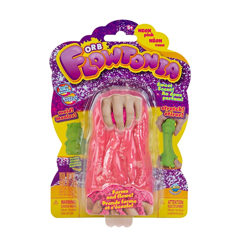 ORB Flowtonia. Moule! Stretch! Flow! Les possibilités de jeu sont infinies! C'est comme par magie! ORB Flowtonia 'Flux de solide à fluide en quelques secondes'. C'est parfumé! Ça brille! C'est soyeux! C'est fascinant - étirez-le et regardez ses brins magiques s'écouler dans le mouvement magique le plus enchanteur. Mouler, façonner, former! Emballés dans un conteneur de rangement en forme unique, amusant, loufoque, au thème fantaisiste, les créations sont infinies! Étirez-le, tirez-le, arrosez-le - ORB Flowtonia peut non seulement le prendre, il roule avec le Flow; transformer en formes et personnages magnifiques et uniques! Le nec plus ultra du plaisir sans gâchis se décline en quatre couleurs éclatantes! ORB Flowtonia amène le jeu tactile à un tout autre niveau. Comme le disent nos fans, c'est tellement satisfaisant !!