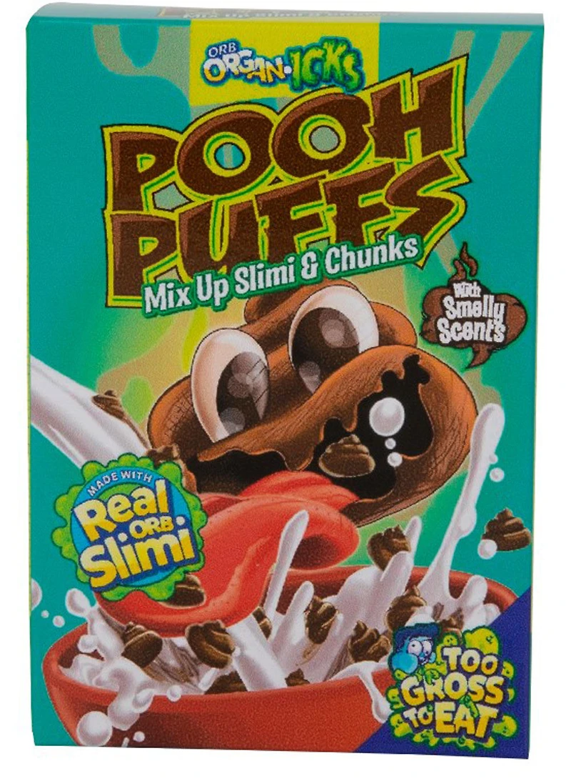 Orb Organ-icksTM - les créations-slime fantastiquement follement OUACHE! Remplies de vrai Slimi Orb, on n'en mange pas, c'est trop dégueu! Collectionnez ou échangez! Les Orb Organ-icksTM coulent et dégoulinent. Hilarantes le matin, les Céréales puantes garnies de textures saugrenues exciteront vos sens. Essayez l'effet vomi des Barf Nuggets, les crottes Pooh Puffs et les gluantes Snotty O's.