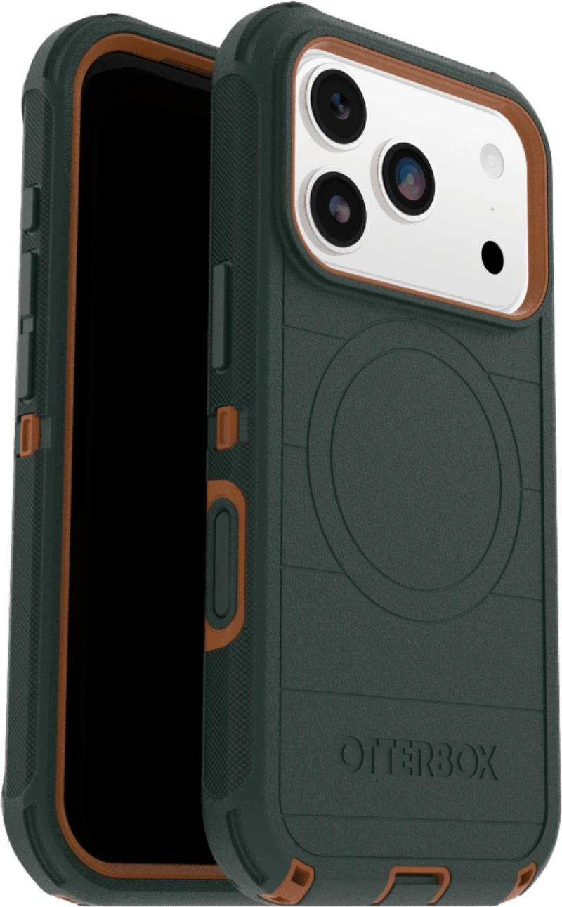 OtterBox Defender Pro MagSafe Case with Camera Control for Apple iPhone 17 Pro For 7X military standard drop defenses, go with Defender Series Pro for MagSafe, OtterBox's toughest iPhone 17 Pro case yet. It's equipped with corners that absorb shock, all-over texturing, MagSafe magnets inside, full Camera Control access and built-in anchors for phone straps. Product Features: Tri-layer defense with a silicone cover to resist bumps, rigid inner shell to hold your phone in place and a memory-foam backing for stability 7X tested to Military Drop Standard (810G-516.6) All-over texture delivers greater grip that helps prevents drops before they happen Precision designed opening for easy interaction with Camera Control without compromising on protection Corners are reinforced to deliver added cushioning and easier pocketing Built-in anchors let you connect phone straps to prevent drops Screen lip keeps display hovering safely off surfaces Port covers block dust and dirt Free holster available (post purchase) clips to belts or bags and doubles as a handsfree kickstand Built-in magnets snap firmly to MagSafe chargers and accessories Port covers block dust and dirt Contains a minimum of 35% recycled content Lifetime warranty