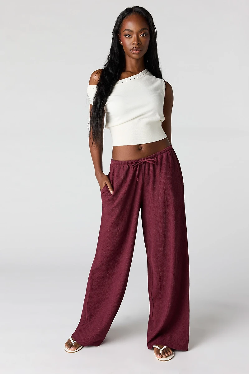 Pantalon à jambe large texturé fluide