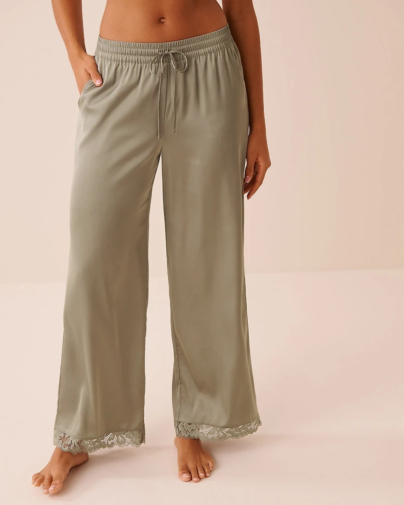 Pantalon en satin bordure de dentelle