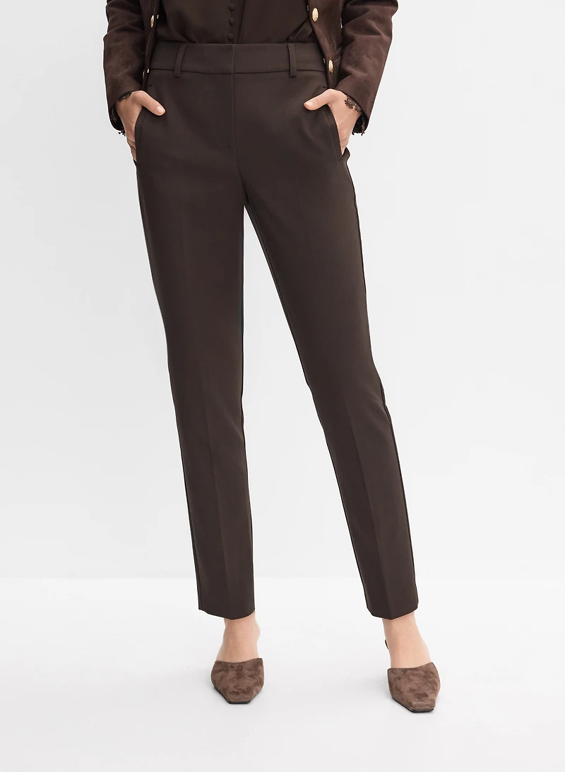 Portez notre pantalon Giselle à jambe étroite pour un look élégant et confortable au quotidien. Ajoutez-y des talons pour un style plus raffiné.