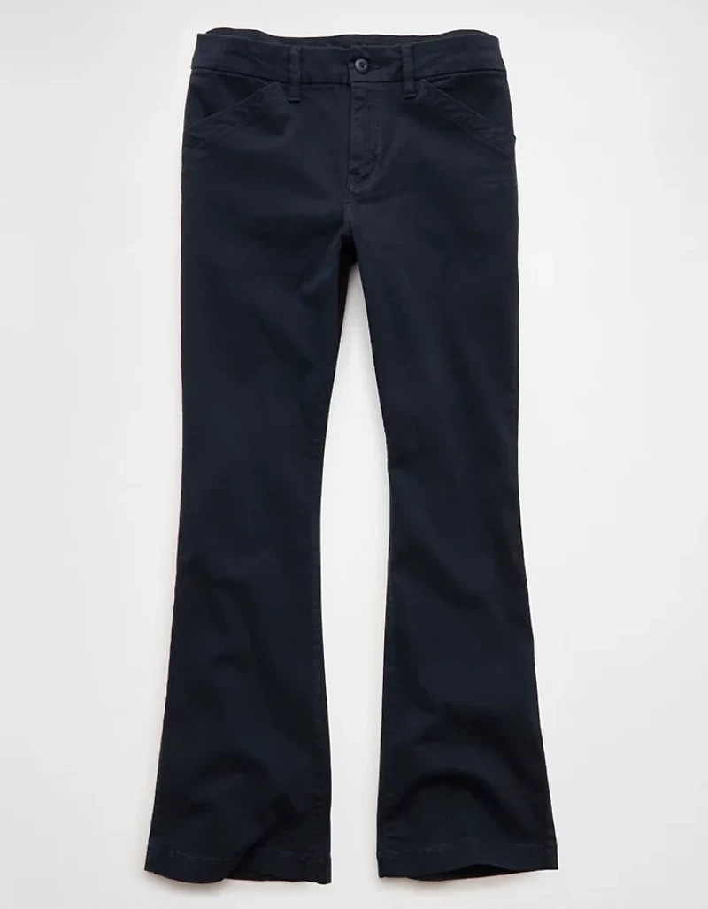 Pantalon kaki à jambe semi-évasée et taille basse en rondeur AEPantalon kaki à jambe semi-évasée et taille basse en rondeur AE