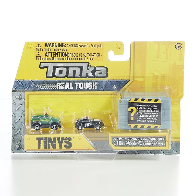 Avec Tonka Tinys, tous vos véhicules Tonka préférés sont maintenant offerts en miniature?! Cette nouvelle gamme de superbes véhicules Tonka offre tous les véhicules emblématiques de sauvetage, de construction et urbains en version minuscule ingénieuse. Le paquet de trois mini véhicules Tonka Tinys comprend 2 véhicules connus et 1 véhicule mystère offert avec son propre garage Tonka Tinys?! Chaque véhicule à roues libres est confectionné avec le souci du détail et ressemble exactement au vrai modèle?! Dès 5 ans. Collectionnez-les tous?!