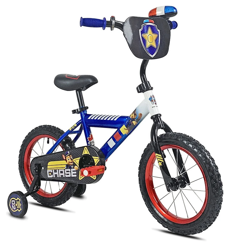 Notre exclusivité, uniquement chez Toys"R"Us. Ce vélo Pat'Patrouille Chase 14 po est parfait pour les débutants! Roulez avec Chase et foncez à la rescousse avec style ! Livré avec une sirène amovible avec lumières et son pour montrer la voie ! Apprendre à s'arrêter, c'est facile, grâce au frein rétro arrière. Pour plus de sécurité, ce vélo est équipé d'un garde-chaîne complet qui protège l'enfant et ses vêtements de la chaîne. Le siège réglable fait de ce vélo une excellente option pour votre enfant en pleine croissance. Les roues d'entraînement donnent un équilibre solide au vélo, donnant confiance aux nouveaux cyclistes, et les roues d'entraînement sont facilement amovibles.