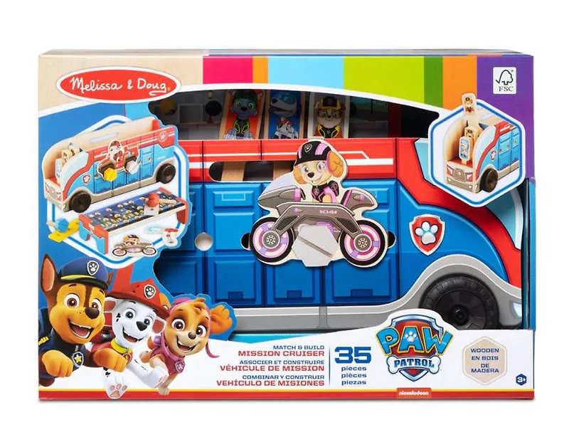 Aucun travail n'est trop grand, aucun chiot n'est trop petit pour correspondre, construire et jouer avec PAW Patrol! Utilisez les outils de personnage en bois, le matériel, les panneaux de véhicule et les pièces de construction pour correspondre aux cartes d'assemblage, remplir des scènes ou créer des projets uniques. Les pièces s'attachent les unes aux autres, à l'établi amovible, aux côtés du croiseur et aux panneaux de construction en bois pour de nombreuses façons et endroits de construire et de jouer. Les outils de caractère en bois se rangent dans la cabine du croiseur et toutes les pièces s'insèrent à l'intérieur. Les roues du croiseur et les poignées intégrées permettent aux enfants de jouer de manière constructive partout où leur imagination les emmène! PAW Patrol est toujours prêt à aider, inspirant les enfants d'âge préscolaire avec un mélange de travail d'équipe, d'aventure et d'humour alors qu'ils développent des compétences sociales, émotionnelles et développementales par le jeu. Ce produit est certifié par le Forest Stewardship Council. La certification FSC garantit que les produits proviennent de forêts gérées de manière responsable qui offrent des avantages environnementaux, sociaux et économiques, et que les forêts sont protégées pour les générations futures.