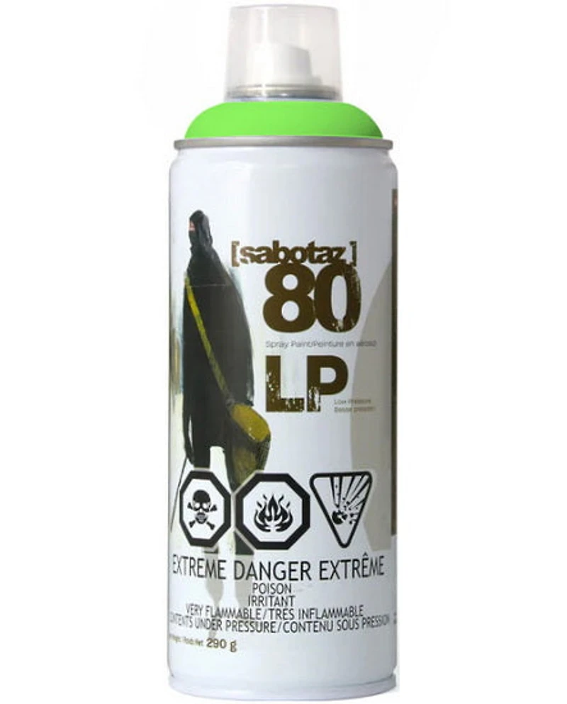 La peinture en aérosol LP (basse pression) Sabotaz 80 est offerte en fini mat ou métallique et offre un vaste choix de couleurs. La peinture en aérosol peut être utilisée à l’intérieur ou à l’extérieur et s'applique sur plusieurs supports. Vendue en exclusivité au Canada chez DeSerres, c’est un produit à découvrir !   • Nouvelle formule• Adhérence amélioréeInitialement destinée à l’univers des graffiteurs, Sabotaz 80 s'adapte à de nombreux usages et s’applique très facilement sur une multitude de supports : plastique, métal, bois, cuir, textile et plus encore. Étonnante, la peinture en aérosol Sabotaz peut être utilisée pour réaliser des projets créatifs. Un produit de qualité qui offre un grand pouvoir couvrant en une seule couche.  Spécifications :• La peinture est sèche au toucher 10 minutes suivant l’application• Utiliser à l’extérieur ou dans un espace bien ventilé• Protéger votre visage avec un masque• Tenir hors de portée des enfants• Produit inflammable• Secouer vivement l’aérosol avant son utilisation • Peindre en maintenant l’aérosol en position verticaleUn détaillant responsableCompte tenu que le contenu en aérosol des produits Sabotaz est nocif pour la santé, et afin d’éviter des situations dangereuses, la direction de DeSerres juge qu'il est de sa responsabilité de réserver la vente de ces produits au plus de 18 ans. Une carte d’identification avec photo à l’appui pourrait être demandée.