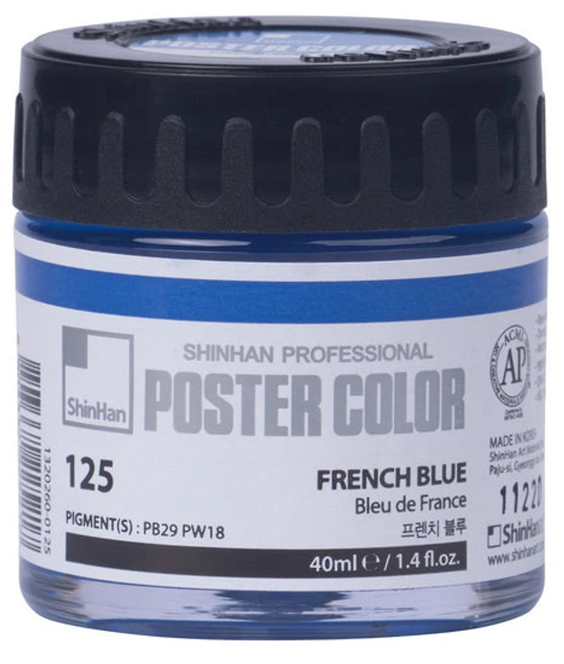 Les couleurs pour affiches Shinhan sont universellement populaires depuis de nombreuses années grâce à leur opacité, leur polyvalence et leurs couleurs vives. Après des années de recherche et de développement, Shinhan a créé une gamme de peinture d’affiches remarquable, de qualité professionnelle et pour les artistes utilisant la gomme arabique comme agent de liaison. Les artistes, concepteurs et illustrateurs qui créent des affiches aux allures nostalgiques qui semblent provenir d’une époque révolue apprécient les qualités inégalées de cette peinture professionnelle. Les couleurs sont soigneusement formulées avec une teneur élevée en pigments purs, finement moulus et d’excellente qualité. Les commentaires des artistes témoignent de la luminosité inégalée, la saturation élevée et l’excellent pouvoir couvrant de cette peinture. Celle-ci s’écoule facilement, sèche rapidement et uniformément pour créer un fini mat et opaque. La peinture d'affiche de qualité professionnelle Shinhan est maintenant offerte dans une gamme de 69 couleurs.La peinture d'affiche de qualité professionnelle Shinhan est résistante au crayon et d’une consistance crémeuse, sèche rapidement et est lavable sur la peau et la plupart des tissus. Cette peinture convient pour une variété de pinceaux et de surfaces non graisseuses, y compris le verre, le papier mâché et l’argile.Quantité : 40 mlPigments purs finement moulus Teneur élevée en pigments de la plus haute qualitéLuminosité inégalée et saturation élevéeExcellente opacité et pouvoir couvrantÉcoulement facile, séchage rapide et uniforme, fini mat et opaqueConvient sur toutes les surfaces non graisseuses y compris le verre, le papier mâché et l’argile