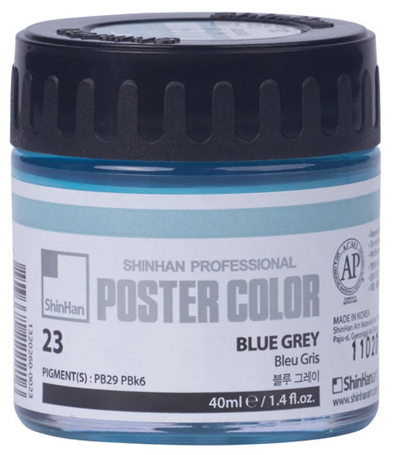 Les couleurs pour affiches Shinhan sont universellement populaires depuis de nombreuses années grâce à leur opacité, leur polyvalence et leurs couleurs vives. Après des années de recherche et de développement, Shinhan a créé une gamme de peinture d’affiches remarquable, de qualité professionnelle et pour les artistes utilisant la gomme arabique comme agent de liaison. Les artistes, concepteurs et illustrateurs qui créent des affiches aux allures nostalgiques qui semblent provenir d’une époque révolue apprécient les qualités inégalées de cette peinture professionnelle. Les couleurs sont soigneusement formulées avec une teneur élevée en pigments purs, finement moulus et d’excellente qualité. Les commentaires des artistes témoignent de la luminosité inégalée, la saturation élevée et l’excellent pouvoir couvrant de cette peinture. Celle-ci s’écoule facilement, sèche rapidement et uniformément pour créer un fini mat et opaque. La peinture d'affiche de qualité professionnelle Shinhan est maintenant offerte dans une gamme de 69 couleurs.La peinture d'affiche de qualité professionnelle Shinhan est résistante au crayon et d’une consistance crémeuse, sèche rapidement et est lavable sur la peau et la plupart des tissus. Cette peinture convient pour une variété de pinceaux et de surfaces non graisseuses, y compris le verre, le papier mâché et l’argile.Quantité : 40 mlPigments purs finement moulus Teneur élevée en pigments de la plus haute qualitéLuminosité inégalée et saturation élevéeExcellente opacité et pouvoir couvrantÉcoulement facile, séchage rapide et uniforme, fini mat et opaqueConvient sur toutes les surfaces non graisseuses y compris le verre, le papier mâché et l’argile